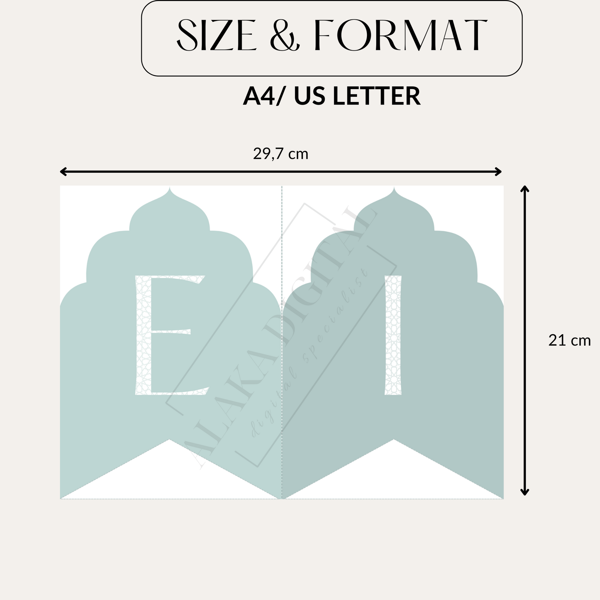 Célébrez l'Aïd avec une magnifique bannière DIY ! Ajoutez une touche festive à votre maison, à votre iftar ou à votre fête de l'Aïd avec cette élégante bannière imprimable « Aïd Moubarak » . Facile à imprimer, à découper et à assembler : suivez simplement les pointillés pour une installation facile. Créez une ambiance festive pour l'Aïd en quelques minutes !