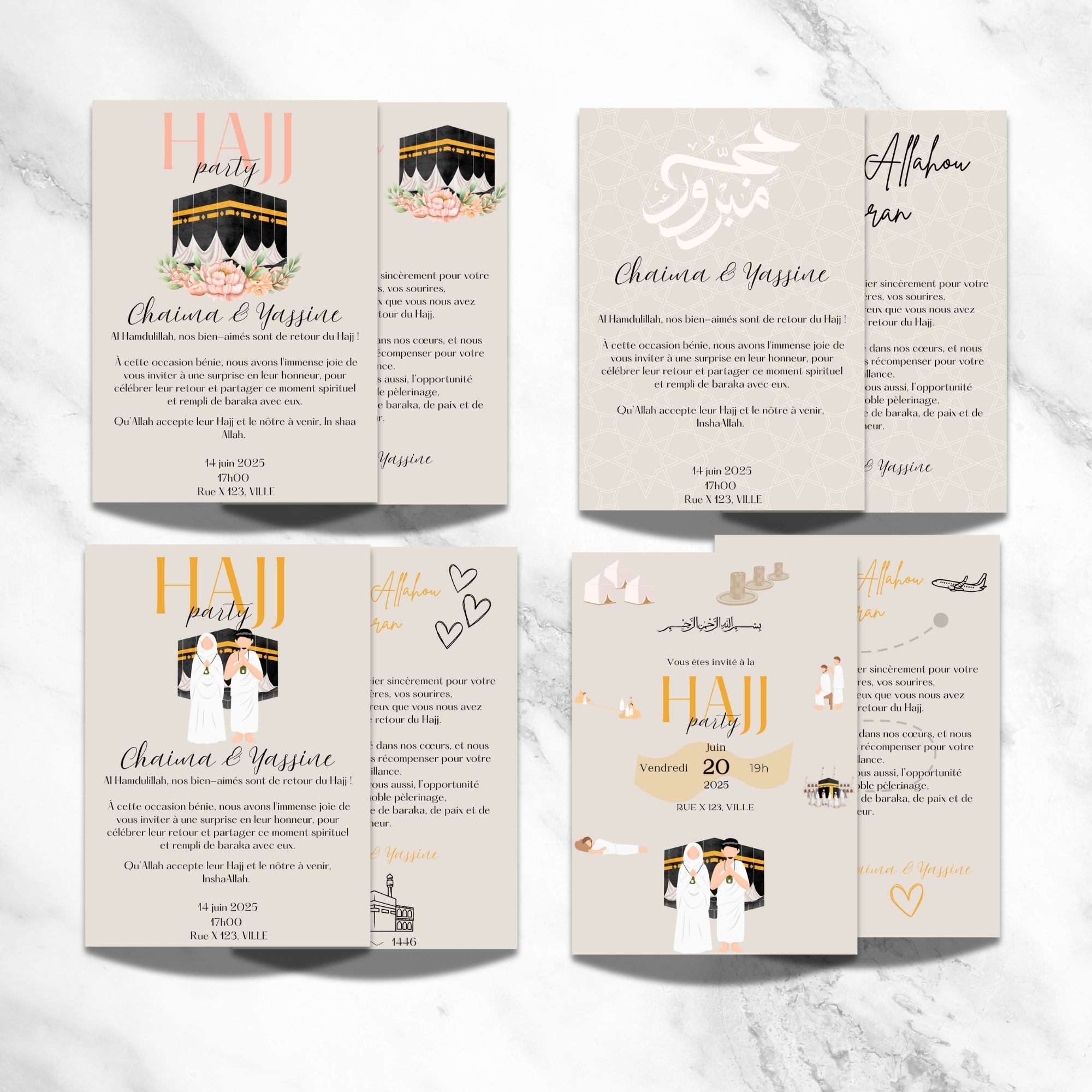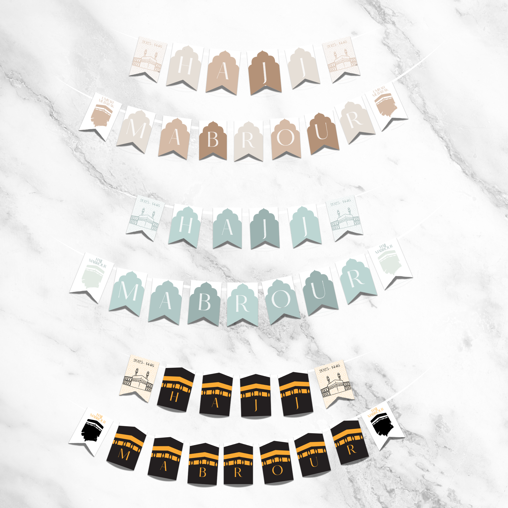 Pack Digital Hajj Mabrour – Invitations, Guirlande & Affiche Murale Personnalisables