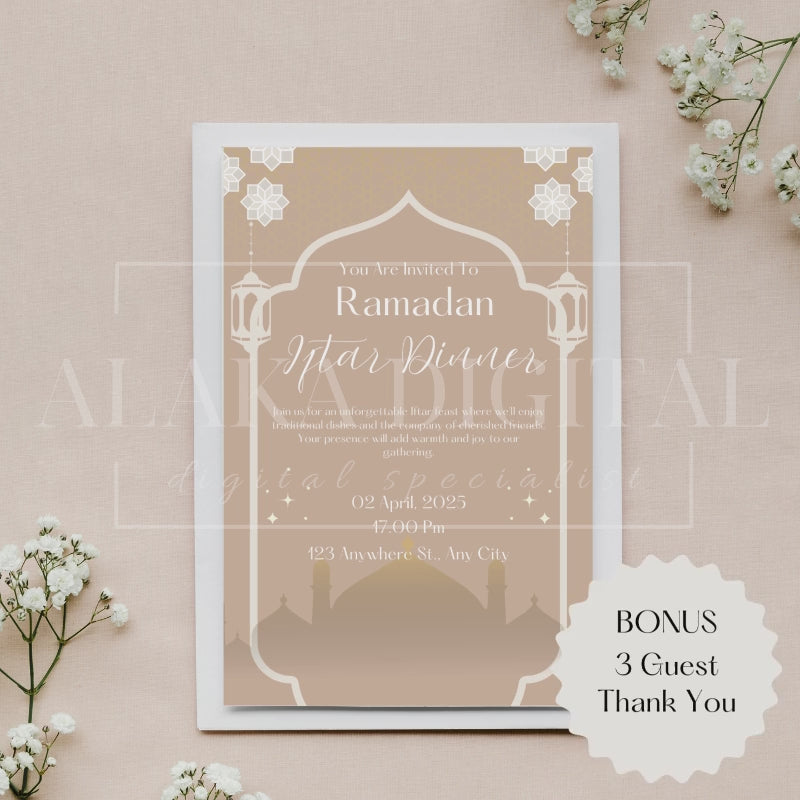 Invitation et décoration du Ramadan : cartes de remerciement pour les invités, invitation à une fête Iftar, modèle islamique