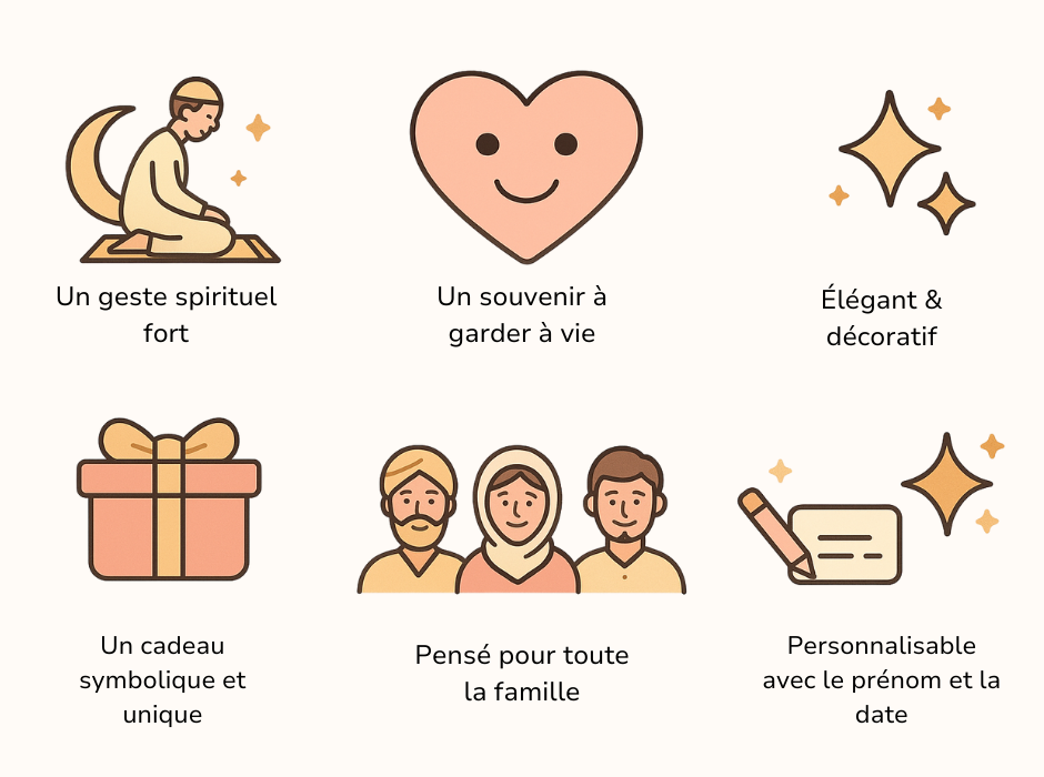 Cette carte d’embarquement symbolique pour le Hajj est plus qu’un simple billet : c’est un geste attentionné, une manière gracieuse de célébrer ce moment spécial.