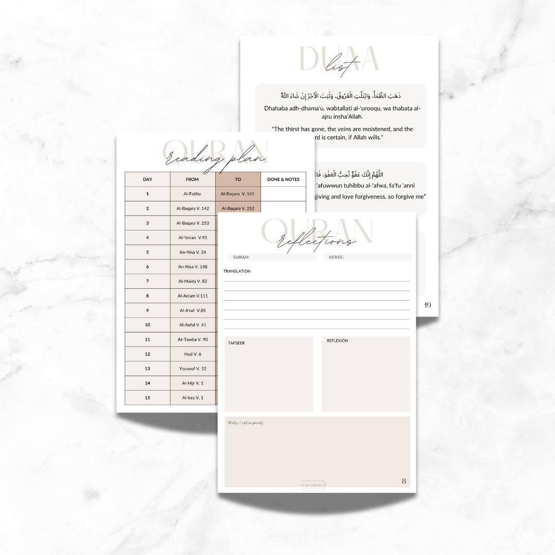This bundle is such a game-changer for Ramadan! I always start the month with big goals, but staying organized is soooo hard. This planner makes it much easier , it helps with Quran reading, prayers, good deeds, and even meal planning (which is a lifesaver for iftar!)