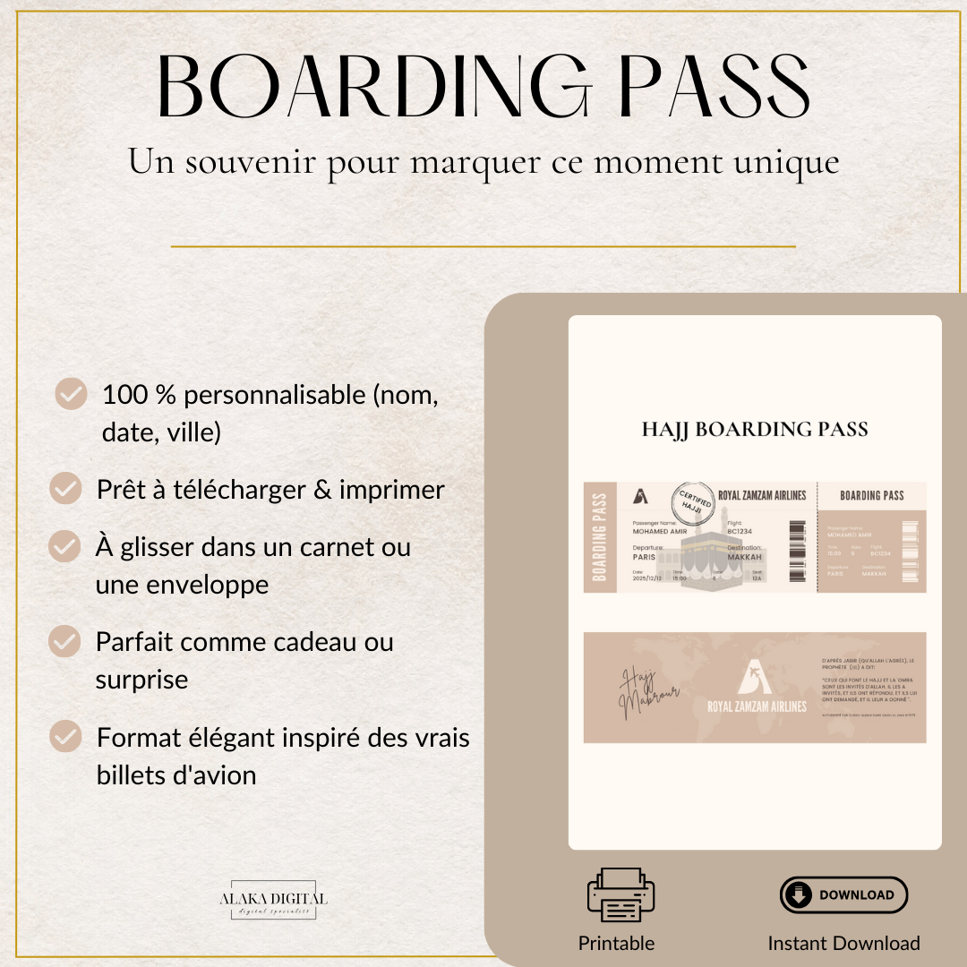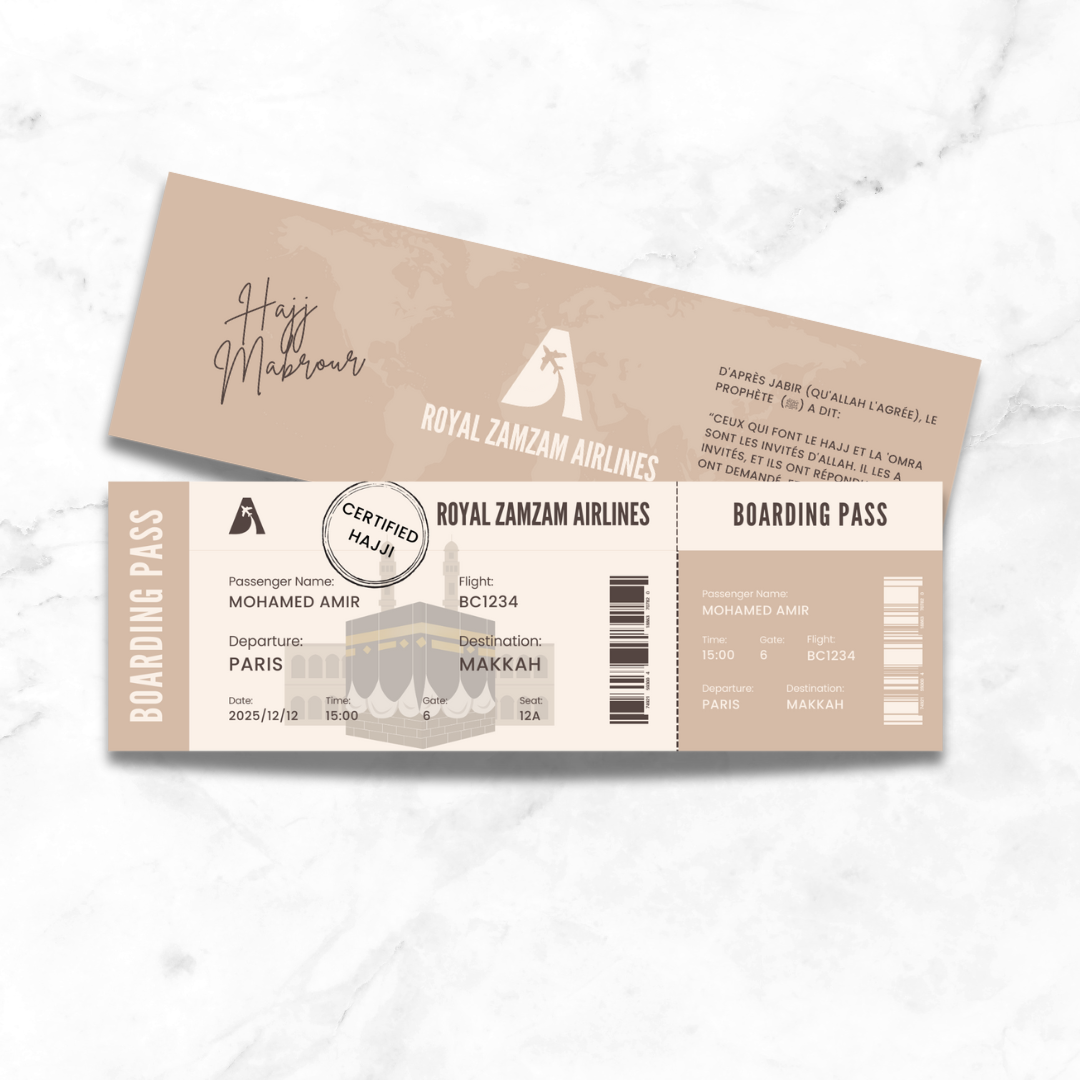A symbolic boarding pass to personalize and keep as a cherished memory of your sacred journey.